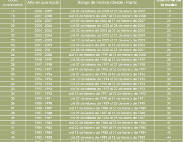 Empecemos con tu edad Lunar, busca tu fecha de nacimiento en la siguiente tabla: